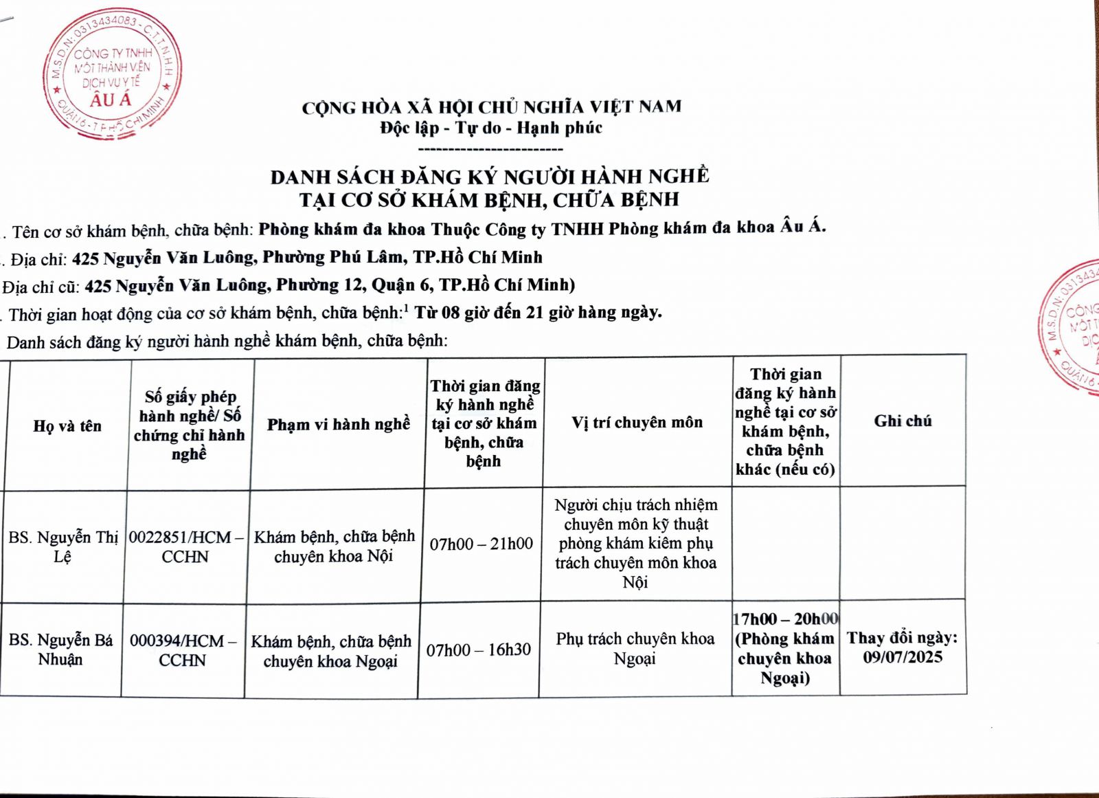 Thông Tin Phòng Khám Đa Khoa Âu Á